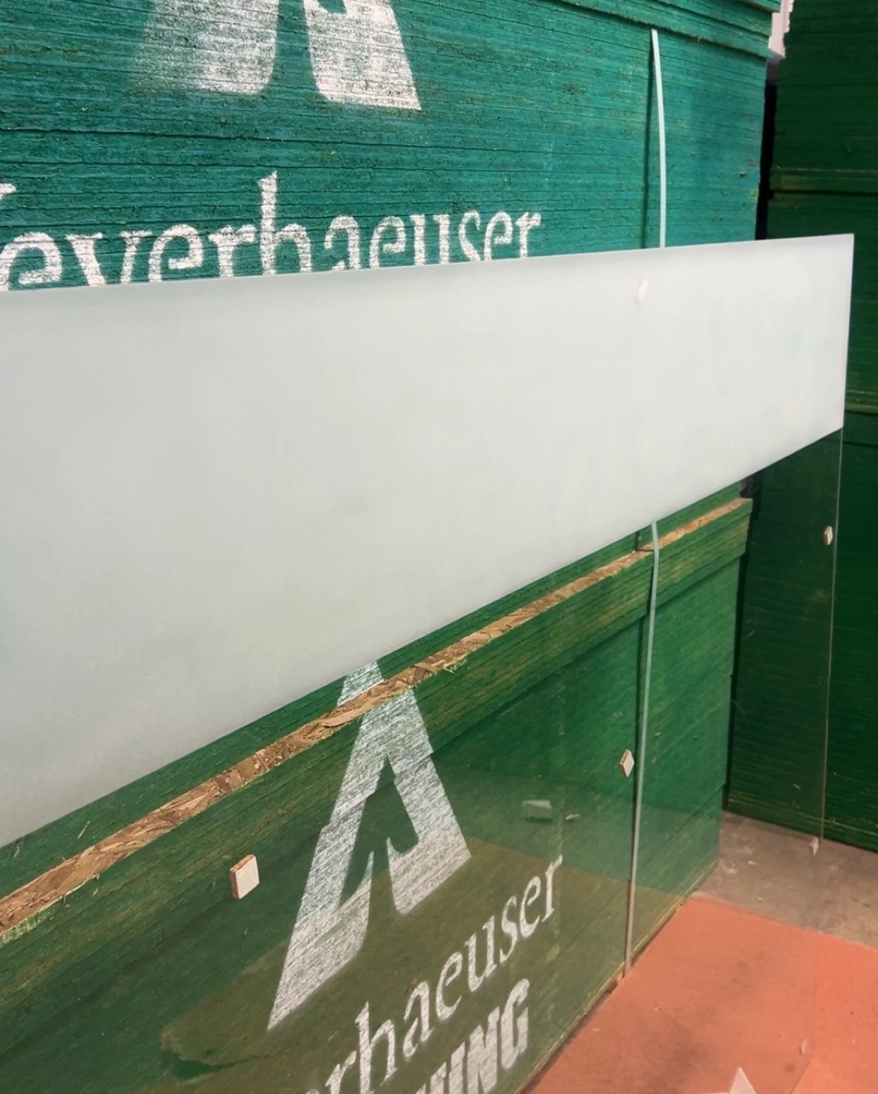 Glass Frosting - We also provide full service glass frosting. Glass frosting is a creative way to add character to glass pieces. Whether its intricate designs or full panes we can do it all. We use a fine media that doesn’t cut deep but still leaves a beautiful finish. With virtually no size limit creativity is the only limiting factor.